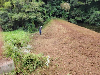 まだ24.23歳で、最初はどうなるやら?と思ってましたが、彼らは馴れないながらも一生懸命で、良くやってくれています、現に川崎工業団地汚水管布設工事では床堀の深さを見て、床をならし、基礎砂をならして、私達がパイプを入れてからまた彼らが砂埋戻し、転圧と完全にこなしてました(驚)コミニュケーション?も取れて、まるで1年以上一緒に働いている感じです。これからも一緒に頑張って下さい。今日も草刈り機の修理で…字が見え辛くなってきたので、続きは又後日に書きます。明日も杵築市(山香町)の溜池伐採(竹が長く密集して⤵)で大変なので…