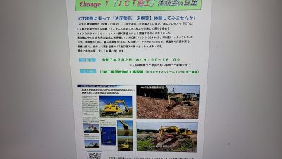 下請けで施工してました川崎工業団地造成工事現場にて日出町初の《ICT施工体験会》を開催しました。最近は県発注工事では試行工事が多くなって来たのでは?と…まぁうちが受注出来る規模の工事では皆無ですが(笑)うちがICT 施工に取り組み始めてちょうど1年になります。同地区の業者の方々や発注者の日出町職員の方々にICT 施工の必要性や便利性をどうしてもお伝えしたい!と思ったからです。業界の中でも、本当小規模で非力(笑)なうちでも、国や県からの補助金をフル活用して着工前(準備工)から測量、3Dデータの作成→ICT 重機やアプリにダウンロードして、丁張り不用で土工事や構造物工事が高精度で出来る様になりました。同業他社より人員も少なく、機動力が無いうちが生き残る為に?舵を切りました。それが良かったのか?は未だ1年なのでなんともって感じですが、先々月が決算でした…売り上げは約前年度の倍になりました。皆も大変だったと思いますが、やはりICT 施工なくしては出来なかったと思います。まだまだこれからですが、徐々に精度向上して完全に施工出来るよう日々研鑽して行きます。体験会に参加して下さった方々が徐々にでも取り入れてもらえれば、県(小規模工事)、市町村発注工事でも設計でICT 施工を取り入れて頂ける様になると思います。うちも[ICT施工の出来る会社]として頑張って行きます。