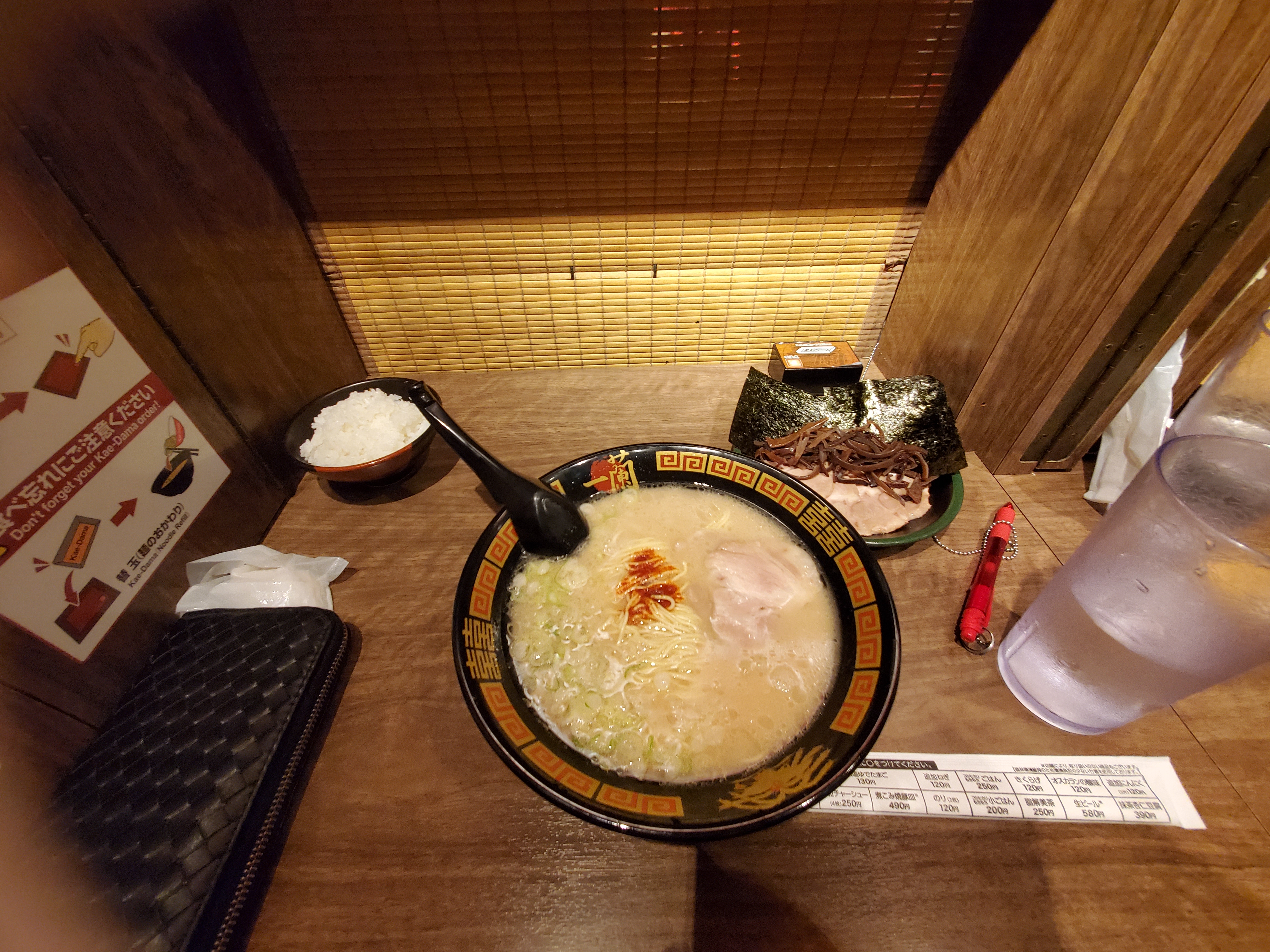 昼を少し過ぎました。待ちに待った『昼食』です。休日作業、町外ですので、皆で『外食』です。加来のローソンでタバコを買い、『どこで食べる?』すぐ先に『鳴門うどん』がありました。この前大分のTVで『うどん店No.1』でした。やはりリーズナブルでメニューも豊富、安くて、お腹いっぱいになります。TVで紹介していた『穴子天ぷらうどん?』を食べてみたかったです。コロナ前は夫婦で別府の鳴門うどんに行ってましたが。コロナ渦で全く行かなくなりました。ので私は余計に『行きたかった』のですが・・・3代目が『一蘭行く!!』と豪語したため、仕方なく?一蘭へ向かいました。『結構遠いのに・・・鳴門うどんでいいやんか!』と思いましたが、『老いては子に従え?』ですかね。私は『一蘭』は2回目です。以前も大分駅裏の大分銀行の駐輪場を施工しに来た際、3代目と行きました。その時は具材、麺はさておいて、『スープが最高に旨い!』と思ったと思います。