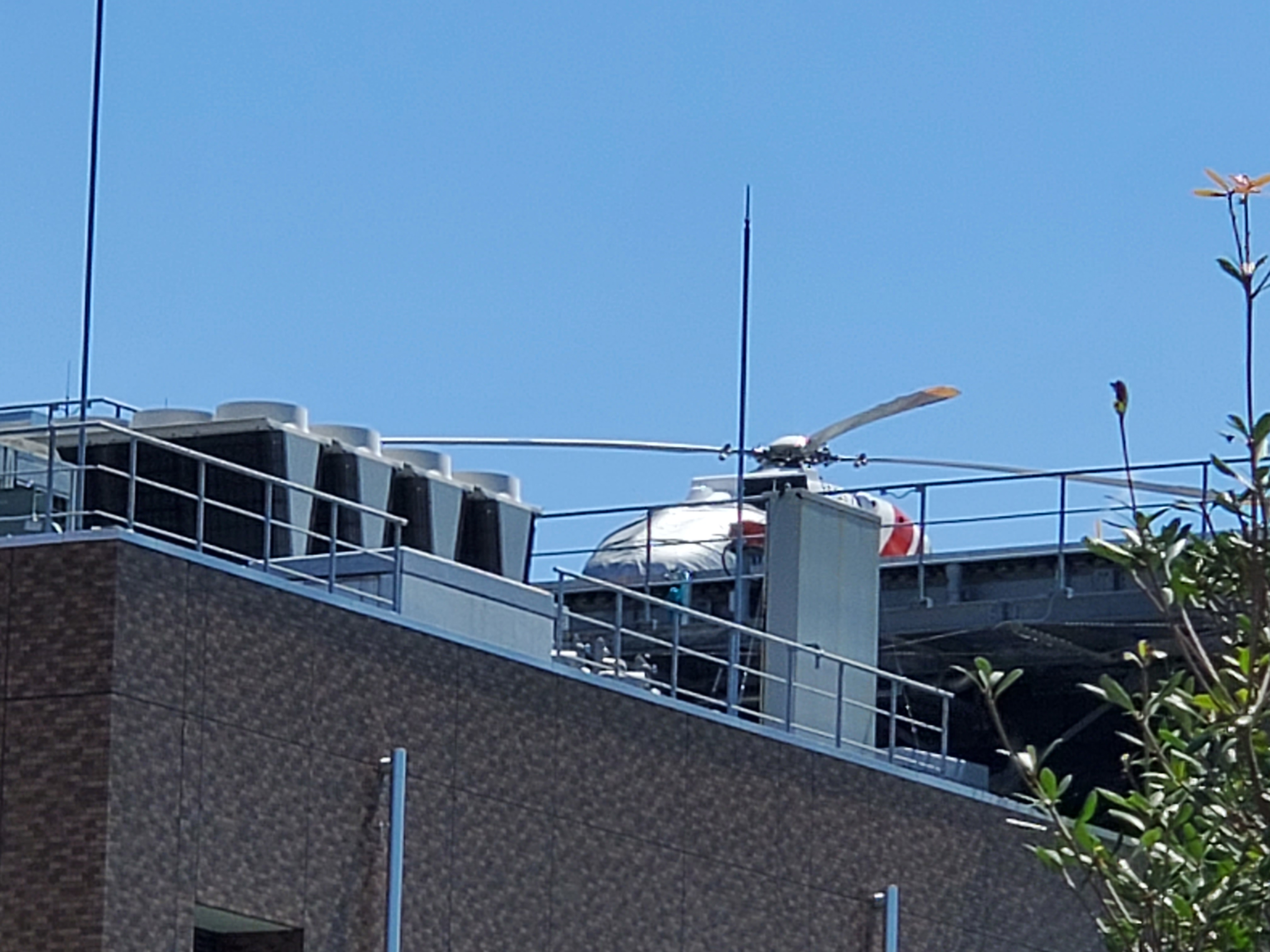 | 大分大学狭間のドクターヘリ! | 丁度、飛立っていく時に凄い音でした。 発電機のほうがよっぽど『静か』です! |